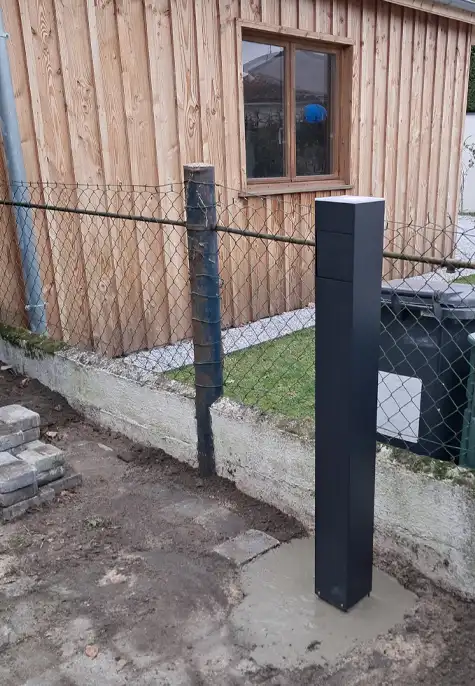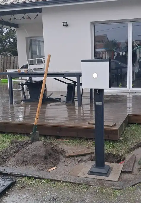 - Création d’un plot en béton pour accueillir le pied de la borne